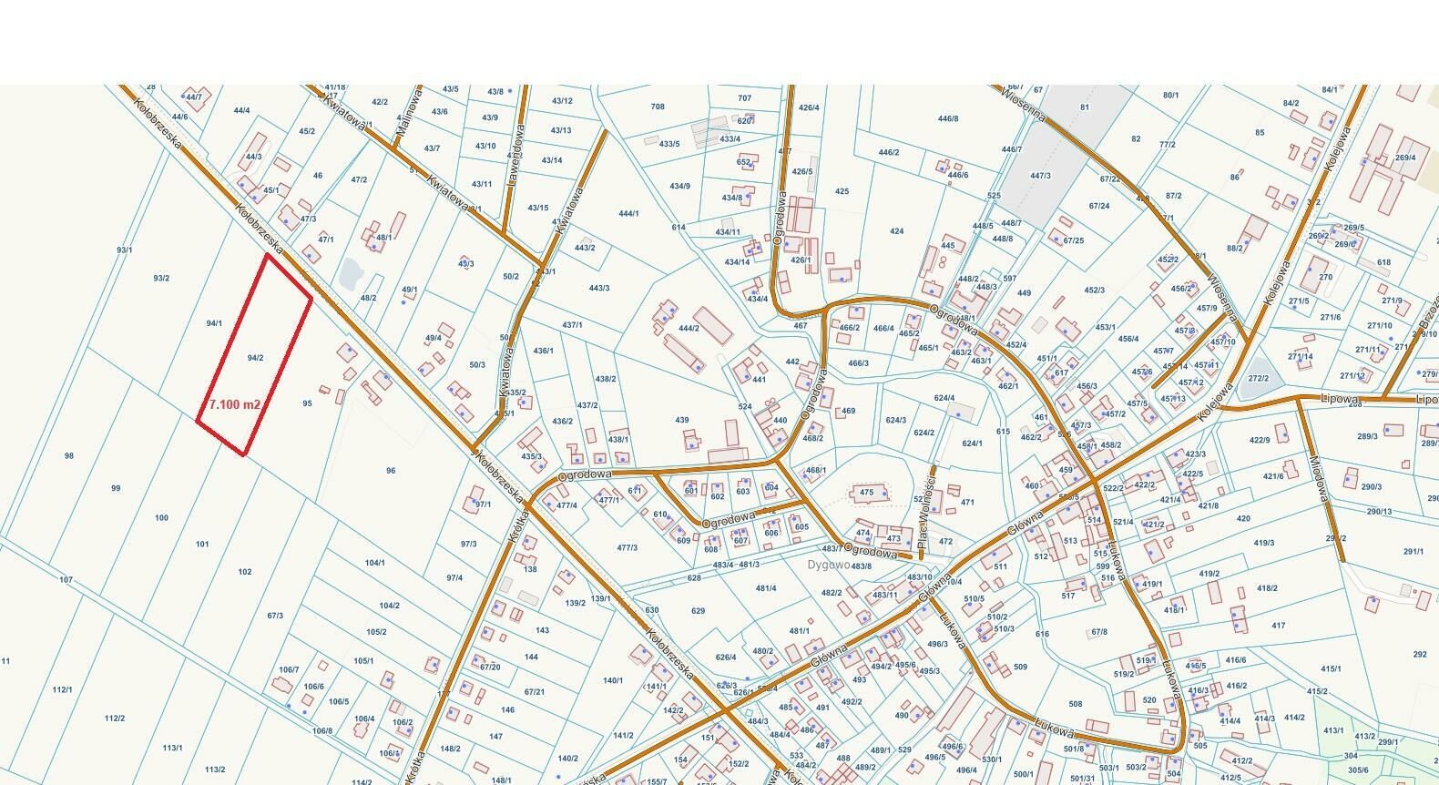 Na sprzedaż niezabudowana działka gruntu o pow. 7100 m2 w miejscowości Dygowo , 12 km od Kołobrzegudziałka położona położona bezpośrednio przy głównej ulicy Kołobrzeskiej przed wjazdem do Dygowa